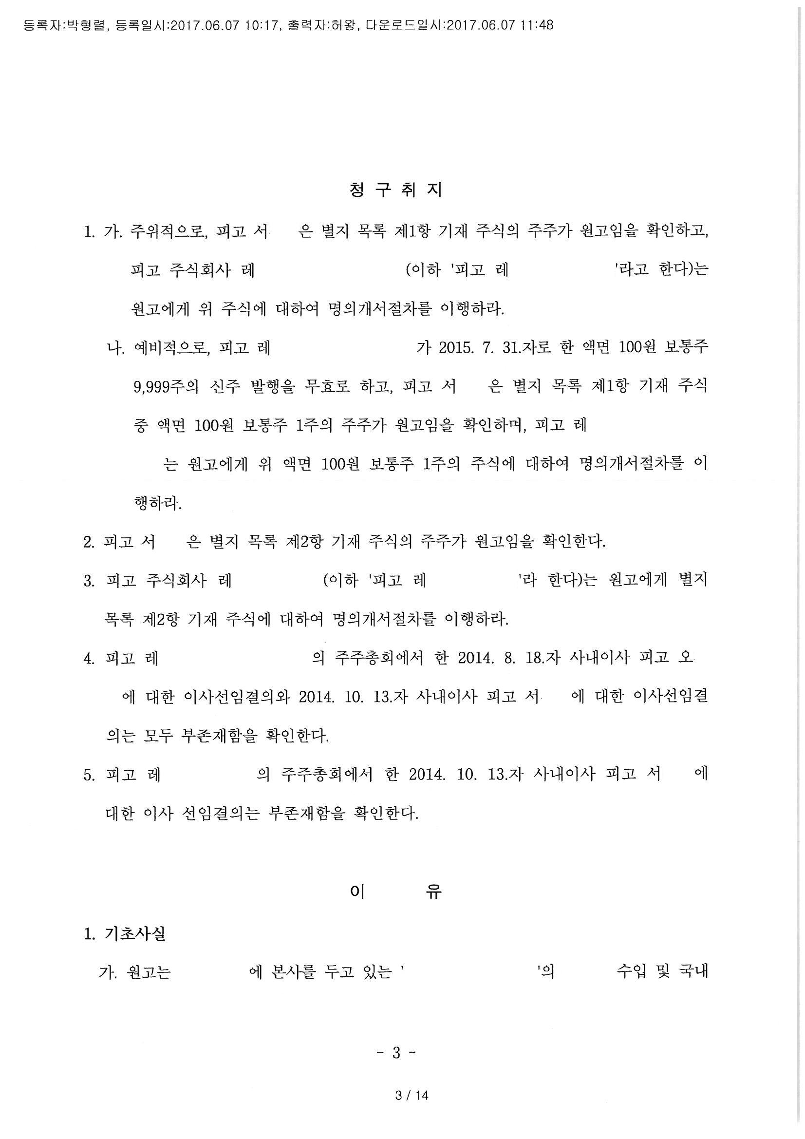 주주지위를 확인하고, 신주발행을 무효로 하고, 이사선임 주주총회가 부존재함을 확인하고, 명의개서 절차를 이행하게 하는