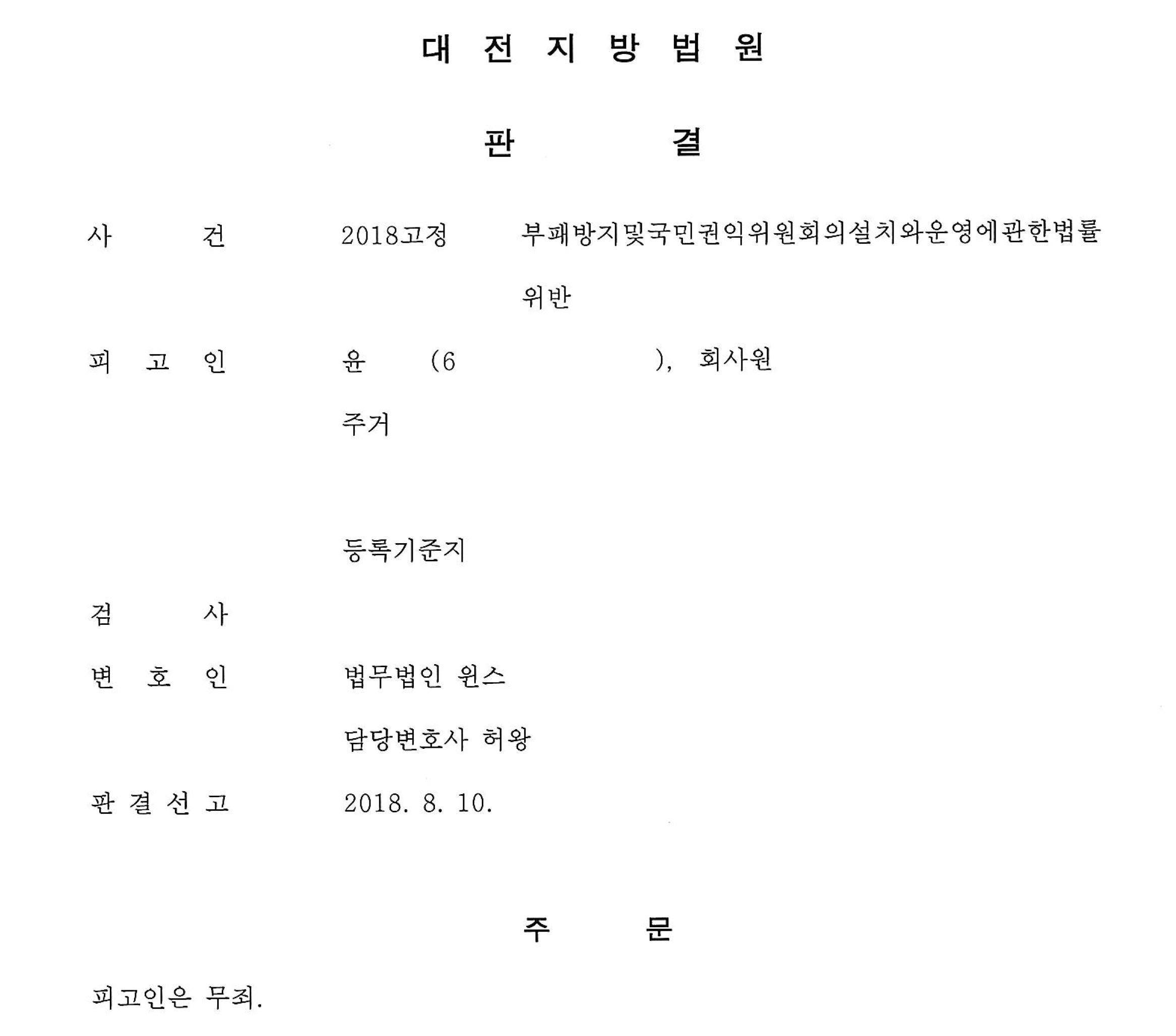 변호인으로서는 상당히 희귀한 “우연히 출석하여 자기 사건 무죄판결을 들은” 매우 뜻깊은(?) 사건이었는데요.