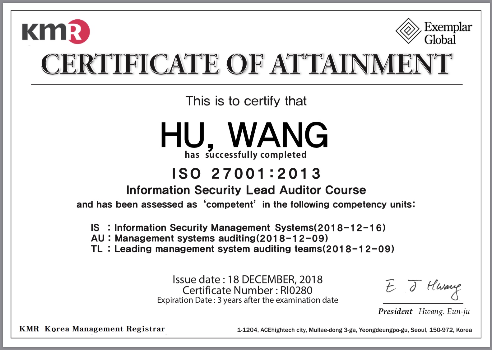 정보보안 분야에서는 가장 권위가 높은 표준이라고 합니다. (https://ko.wikipedia.org/wiki/ISO/IEC_27001)